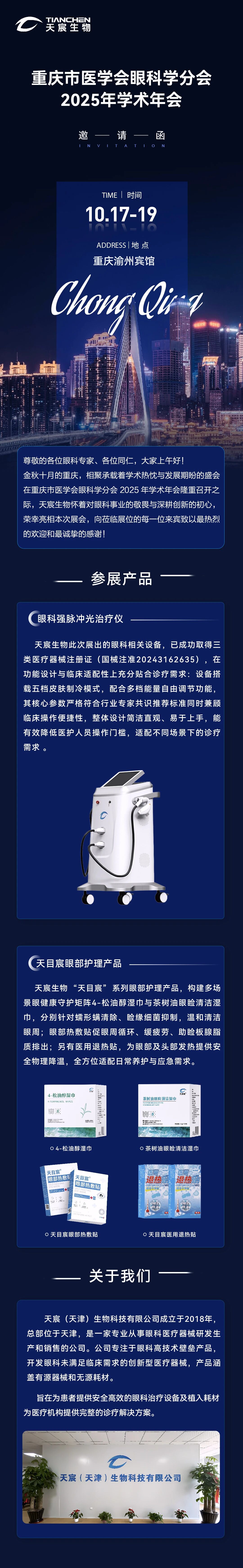 展会预告丨天宸生物邀您相约重庆市医学会眼科学分会2025年学术年会